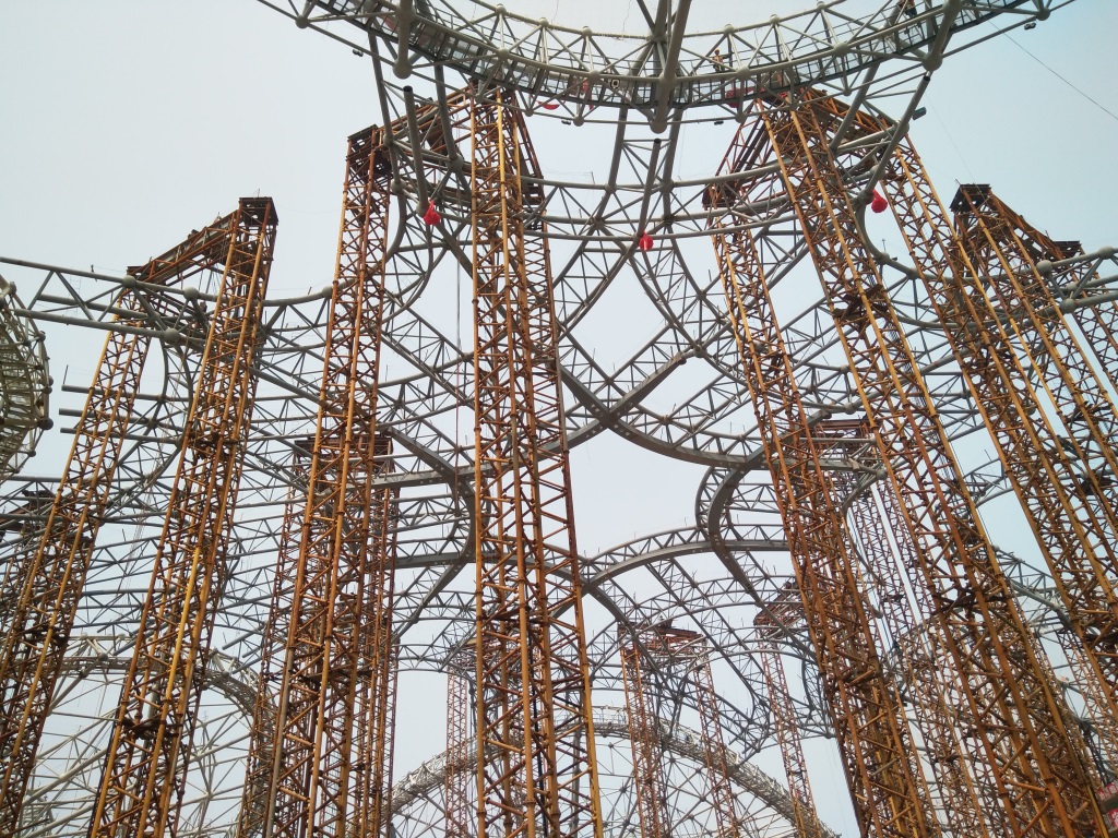 航站樓混凝土結(jié)構(gòu)南北長996m,東西方向?qū)?144m,由中央大廳、中央南和東北、東南、西北、西南五個(gè)指廊組成,中央大廳地下二層、地上五層,其他區(qū)地下一層,地上二~三層。地下一層為行李傳送通道、機(jī)電管廊系統(tǒng)和預(yù)留的APM捷運(yùn)通道,地下二層為高速鐵路通道、地鐵及輕軌通道的咽喉區(qū)段。航站區(qū)總用地面積約27.9ha,南北長1753.4m,東西寬約1591m,總建筑面積約103萬m2(含地下),其中航站樓總建筑面積約70萬m2,綜合換乘中心總建筑面積約8萬m2,停車樓總建筑面積約25萬m2。