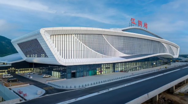 設計上將“江尾海頭、江海交匯”的意蘊融入了站房設計,結合交通建筑空間關系,采用流線型造型,運用“裝配式幕墻龍骨體系”鋼結構設計,大大降低了玻璃自爆率,提升焊接作業(yè)效率,使施工完美呈現(xiàn)站房互動流暢的自然形態(tài),展現(xiàn)優(yōu)美且富有生機的城市形象。