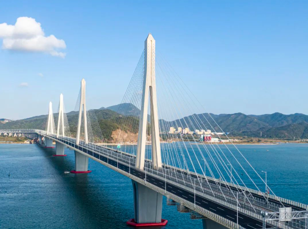 珠機城際珠海西江公鐵大橋起自珠海橫琴新區(qū),橫跨西江磨刀門水道,終至珠海機場東路,其斜拉橋主橋是珠機城際二期關鍵控制性工程,也是珠三角入海口上建設的第一座公鐵兩用大橋。大橋采用多塔剛構體系公鐵同層斜拉橋結構,在國際上尚屬首次應用。大橋主橋全長1371.8米,橋面寬49.6米,主跨為3x340米的公鐵同層挑臂式鋼箱梁四塔斜拉橋,主梁采用單箱三室截面,中間為時速160千米的雙線城際鐵路,兩側為時速100千米的雙向六車道高速公路,是世界首座公鐵同層多塔斜拉橋,也是目前世界上最寬的公鐵兩用多塔剛構體系斜拉橋、目前世界上最大跨度公鐵同層多塔剛構體系斜拉橋。