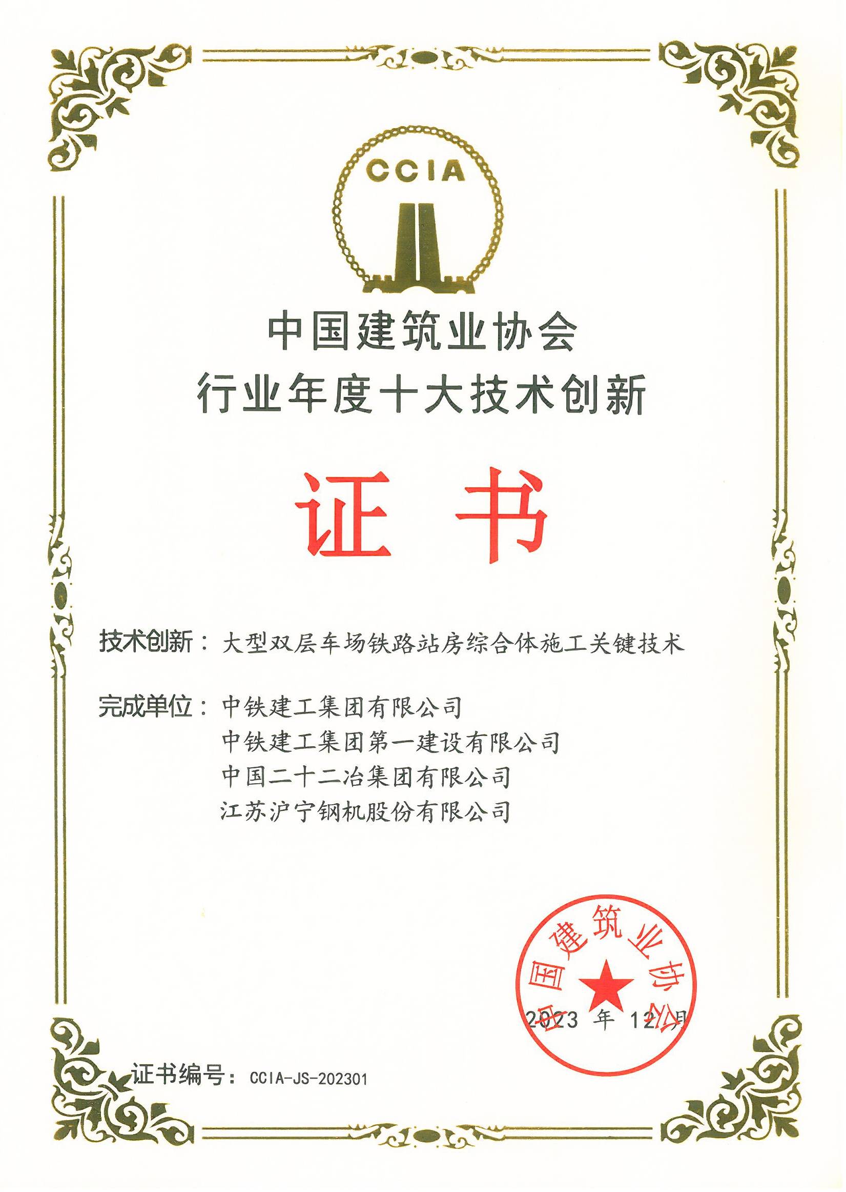 中國建筑業(yè)協(xié)會行業(yè)年度十大技術(shù)創(chuàng)新--大型雙層車場鐵路站房綜合體施工關(guān)鍵技術(shù)