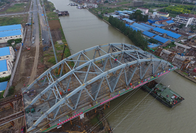 錢皋路(高橋~廣石路)工程QG11標(K2+080~K3+046)京杭運河106m鋼桁梁拱橋和46m鋼箱梁橋鋼結構制作和安裝工程