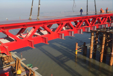 鋼結(jié)構(gòu)主橋結(jié)構(gòu)形式為三跨連續(xù)鋼桁梁橋,跨徑為101.7+130+101.7m,總長333.4m,橋梁設(shè)計(jì)寬度42m。