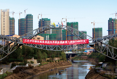 長沙梅溪湖步行橋全長183.95米,其相互交織而又蜿蜒盤旋的外形尤為引人注目。長沙梅溪湖梅嶺公園步行橋高24米,長183.95米。猶如一條飄帶,橫跨龍王港河,連接梅嶺公園和體育公園,簡約漂亮。